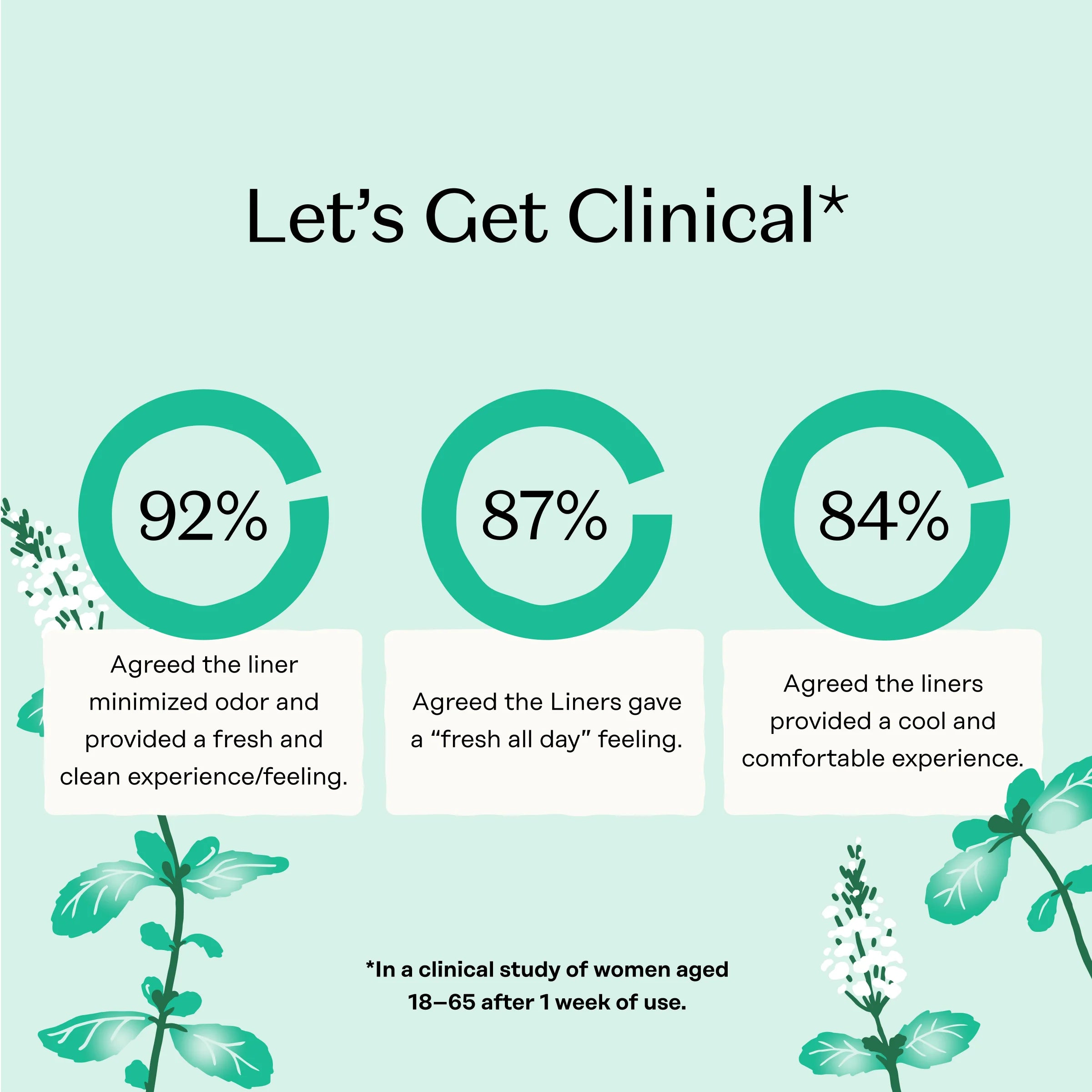 Our Cooling Herbal Infusion Liners are designed with an ultra-absorbent core for leak-proof protection you can trust, and they’re made without added synthetic fragrances, pesticides, and chlorine