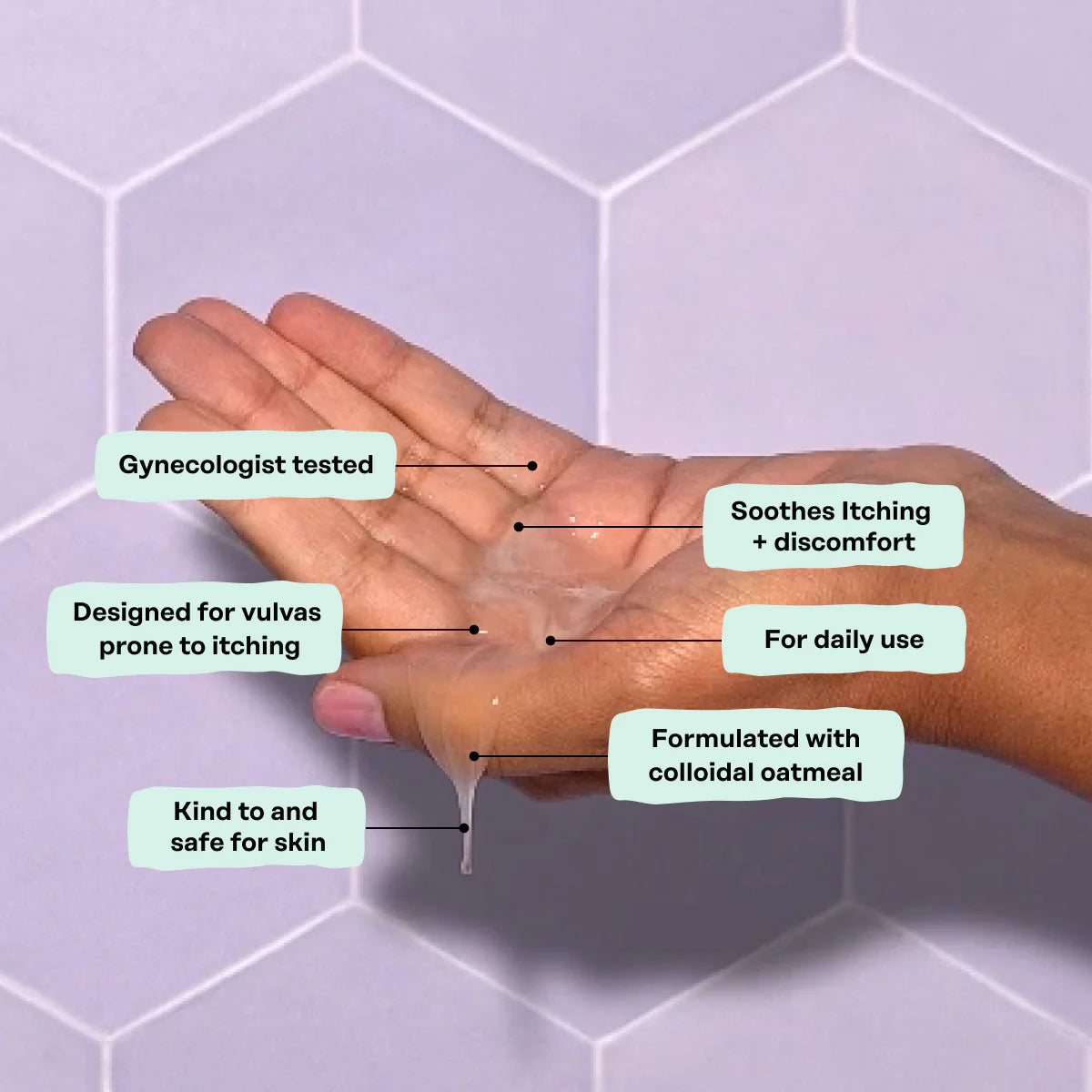 A calming, pH balanced intimate wash infused with skin-soothing colloidal oatmeal, thoughtfully crafted to help comfort when your vulva feels irritated, itchy, or sensitive. This ultra-gentle formula has been clinically tested and shown to help soothe, calm, and leave intimate skin feeling nourished, soft, and hydrated.